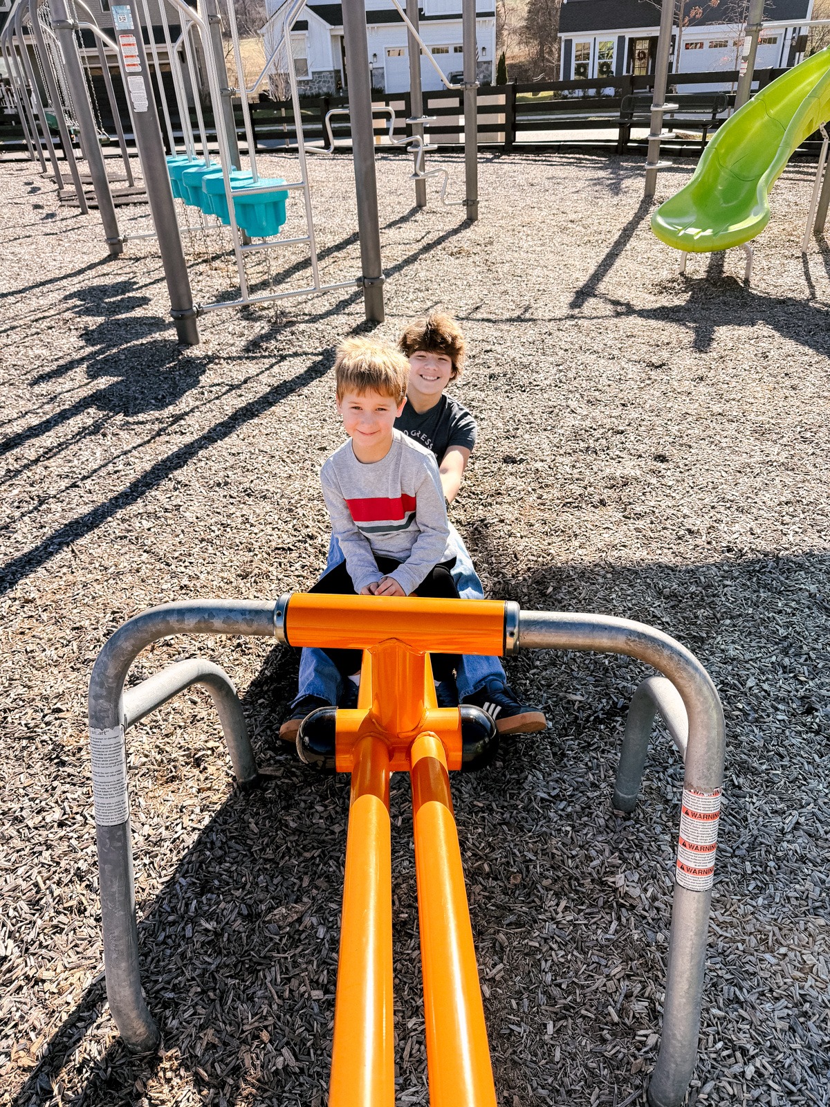 Earlier than Mazen broke his ribs, we see-sawed on a close-by playground! Since he and I are virtually the identical weight, it was a enjoyable physics lesson about weight distribution and stability.