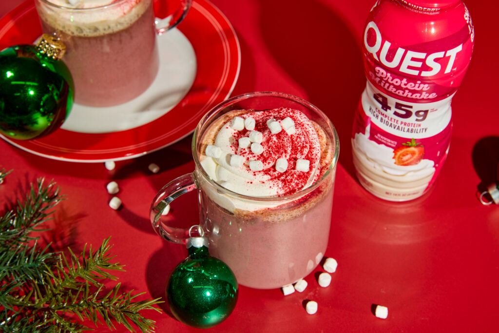 SUCCUMB TO QUESTIFIED RED VELVET HOT CHOCOLATE. These cozy vacation drinks out of your native megachain could style like pleasure—however nutritionally they’re operating on vibes alone. This Pink Velvet Sizzling Chocolate hits completely different. With its dramatic, ruby-red coloration, it seems to be as scrumptious as every other festive deal with—however beneath the cocoa is a Quest Strawberry Protein Milkshake with a protein-forward enhance so highly effective these seasonal sugar bombs don’t even come shut.